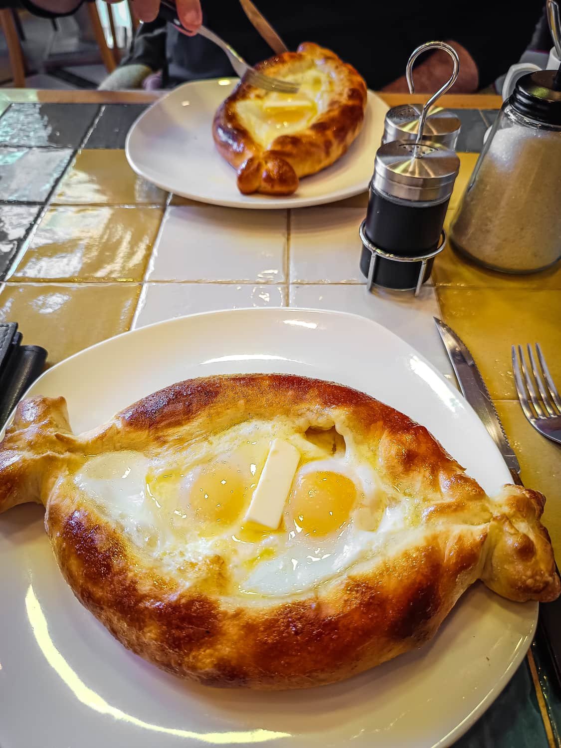 A versão mais conhecida é a “adjaruli khachapuri”, que vem em formato de barquinho com uma mistura de queijos derretidos no meio, manteiga e um ovo cru (ou 2) quebrado por cima.