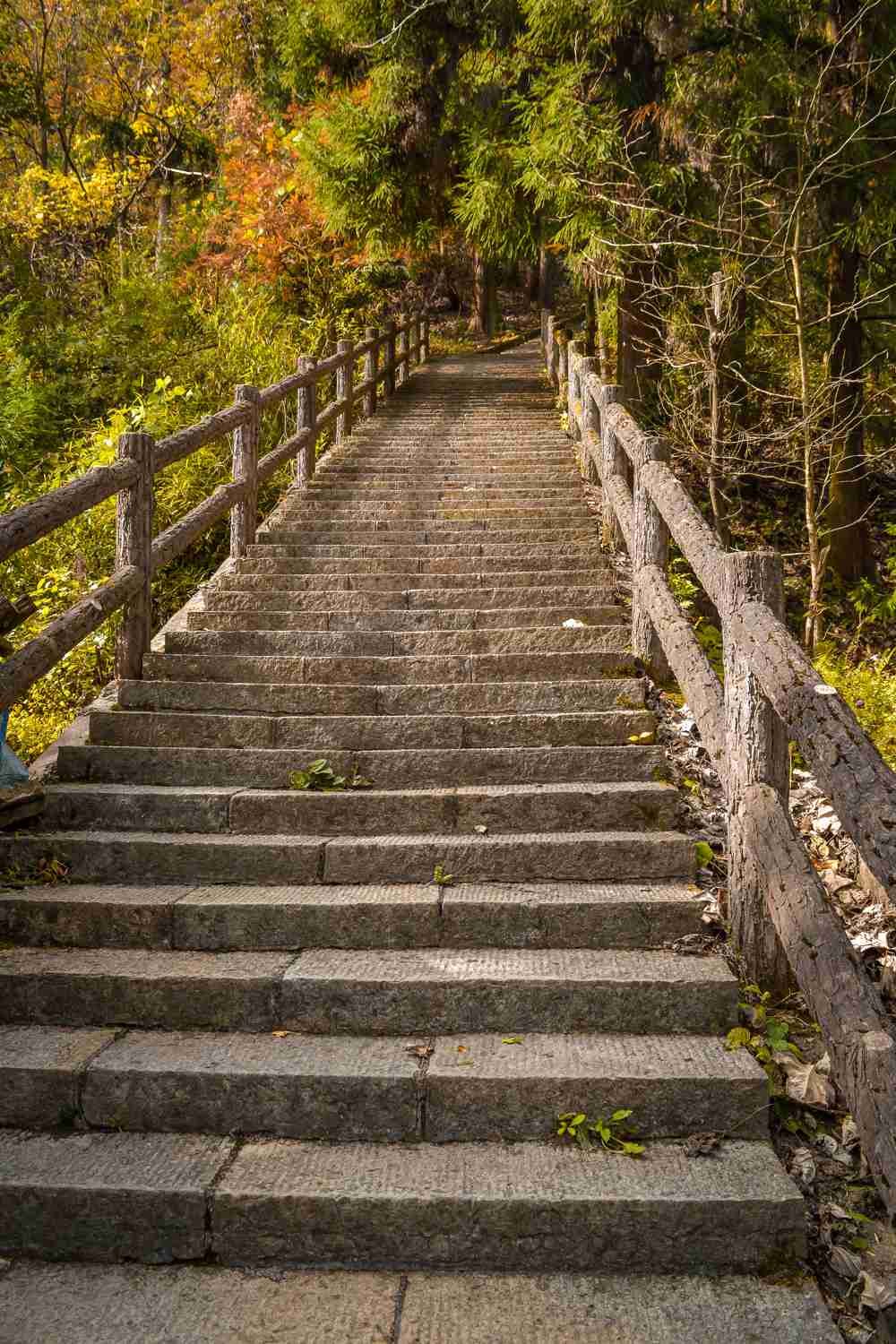 Existe uma trilha para quem quer subir ou descer a Montanha Tianzi sem usar o teleférico.